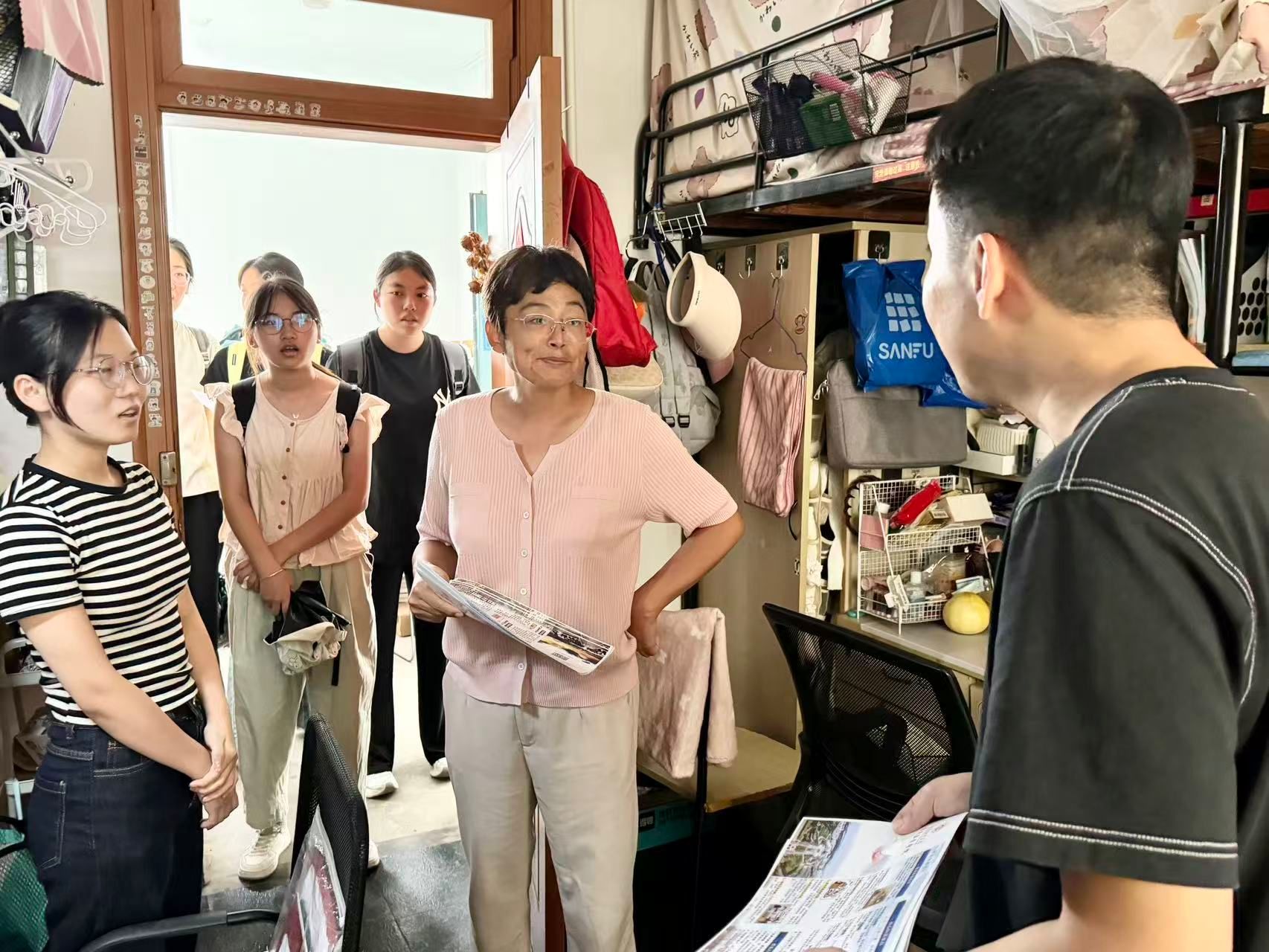 为提升安全教育实效,检查小组以小寝为单位分发消防与网络安全宣传折页。折页内容聚焦实用要点,涵盖消防、人身、财产安全,应急逃生、反诈宣传等核心要点,以图文形式助力学生快速掌握关键技能。同学们纷纷表示,“检查+宣传”的形式实用性强,既排除了隐患,也增强了防范意识,今后将自觉规范用电、维护环境卫生,共同营造安全有序的居住环境。