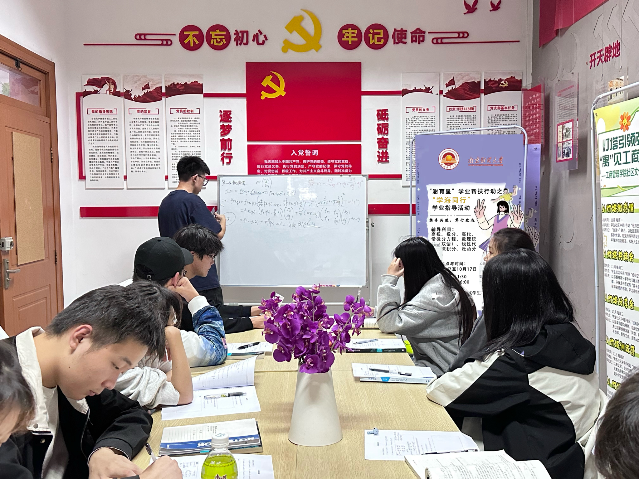 为突破学业瓶颈,助力数学能力进阶,10月16日下午,我们在仙林校区7号宿管站纽扣空间一站式学生社区举办“学海同行”拔高题研习辅导活动。活动由江宇森同学主讲,学院党委副书记孙晓飞主持,“德业”工作室承办,学院各年级学生代表参加。