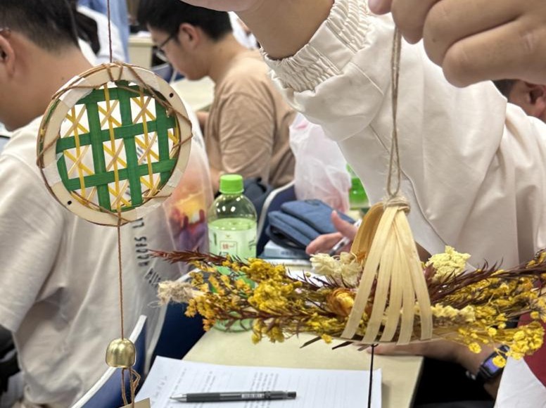 非遗传承铸自信,文化青春续文脉。为厚植文化自信,我们多个团支部以“探访非遗,增自信”为主题,通过“知识讲解+实践体验”的方式,让团员零距离感受中华优秀传统文化的魅力。金数2501团支部开展“非遗传承,青春接力”主题团课,团支书陆一带领团员深入了解南京云锦的历史与当代发展,通过“手工制作纸质云肩”实践,让团员们在穿针引线中体会匠人坚守;数学2501团支部书记邀请钱雨汶、刘嘉等同学分享浙江象山竹根雕、无锡惠山泥人、苏州昆曲的文化故事,带领团员亲手制作竹编风铃,在砍竹、破篾、编织的过程中,感受传统工艺的精妙与“祈福纳吉”的文化寓意。金数2502团支部在主题班会中,邀请江苏各地团员分享家乡非遗:南京云锦的华美、徐州剪纸的灵动、苏州昆曲的雅致……在交流中让团员们感受地方文化特色,增强对中华文脉的认同与自信。