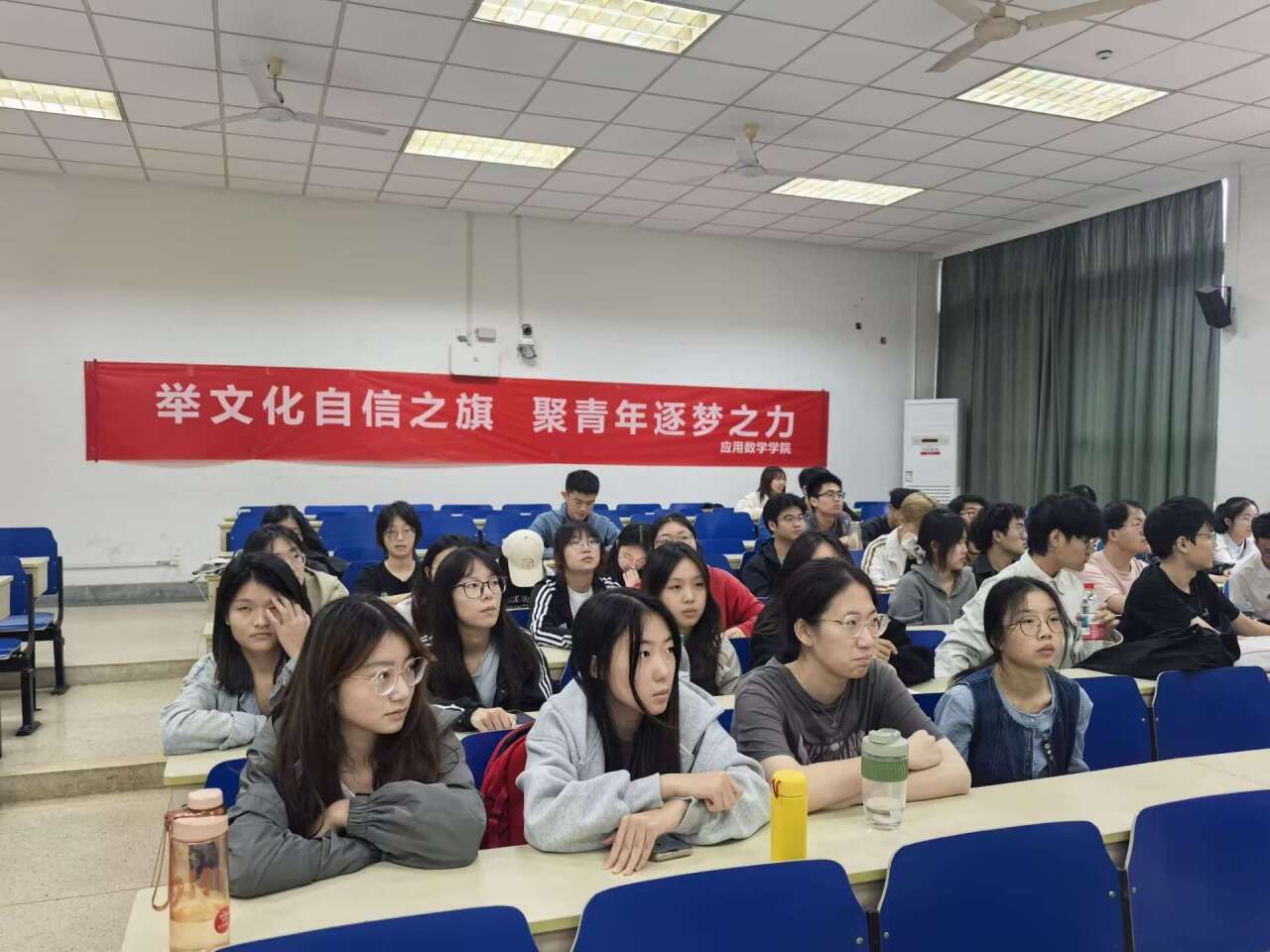 为培养和造就一批用马克思主义中国化最新成果武装头脑的青年马克思主义者,增强广大青年对中国特色社会主义的道路自信、理论自信、制度自信、文化自信,我们团委于10月13日中午在仙林校区德业楼115教室举办第九期青马班第二讲暨青马公开课,本次活动以“举文化自信之旗,聚青年逐梦之力”为主题,学院团委书记李攻明老师主讲,我们第九期青马班全体学员参加。