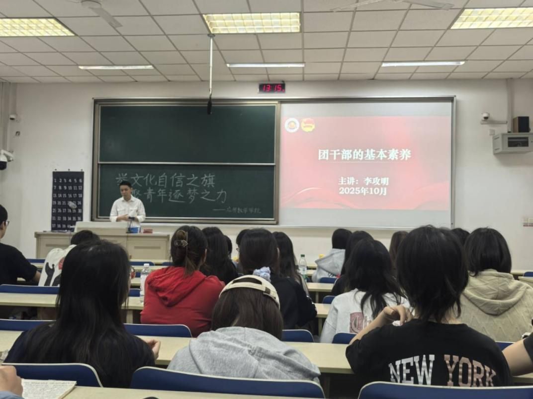 李攻明老师作“团干部的基本素养”专题培训。他围绕“新时代团干部核心素养”展开,从理想信念与政治素质的思想根基,到道德品质、学习成绩的示范价值;从工作能力、责任意识的实践要求,到群众基础、团队协作的服务底色,再到创新能力、发展潜力的成长动能,系统解析团干部“多维度素养图谱”,为全体青马班成员“充电赋能”。